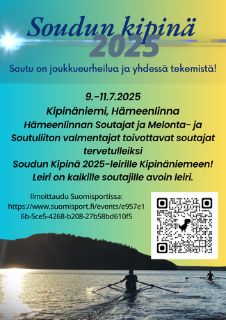 Hämeenlinnan Soutajat ja Melonta- ja soutuliiton olympialuokan soudun valmentajat toivottavat soutajat tervetulleiksi Soudun kipinä 2025 -leirille Kipinäniemeen. Soutupaikkana toimii Kipinäniemi, jossa sijaitsee Hämeenlinnan Soutajien soutuvaja ja majoittuminen tapahtuu Kiipula Guest Housen tiloissa Turengissa.